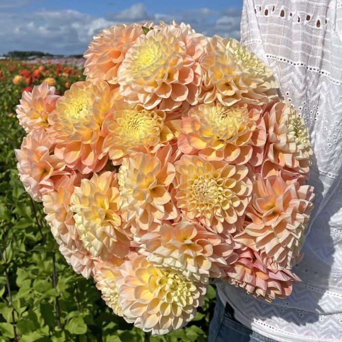 Wszystkie inne produkty kupione razem z daliami zostaną wysłane również w marcu/kwietniu. Jeśli chcesz otrzymać je wcześniej – złóż osobne zamówienie. Dalia Honey Dew przyciąga wzrok od pierwszego spojrzenia swoimi miodowo-słodkimi kwiatami w odcieniach kremu, moreli i delikatnej żółci. Jej perfekcyjnie uformowane, średniej wielkości kwiaty tworzą eleganckie, harmonijne kompozycje na rabatach i w bukietach. To odmiana, która wnosi do ogrodu ciepło i lekkość, a sadzona w grupach daje szczególnie spójny i dekoracyjny efekt. Honey Dew pięknie komponuje się z różami, żółciami i pomarańczami, dzięki czemu idealnie sprawdzi się w letnich i jesiennych aranżacjach. Stabilny wzrost i długie kwitnienie czynią ją wdzięcznym wyborem zarówno dla początkujących, jak i doświadczonych miłośników dalii. INFORMACJE DODATKOWE: Rodzaj: dekoracyjna Wysokość: ok. 90 cm Wielkość kwiatu: M (10–14 cm) Stanowisko: pełne słońce Termin sadzenia: wiosna, po ostatnich przymrozkach Okres kwitnienia: lipiec – listopad Forma sprzedaży: 1 karpa dalii Producent: FAM Flower FarmZ UWAGI NA BARDZO DUŻĄ ILOŚĆ ZAMÓWIEŃ, CZAS REALIZACJI ZAMÓWIENIA WYNOSI 2-3 DNI ROBOCZE.