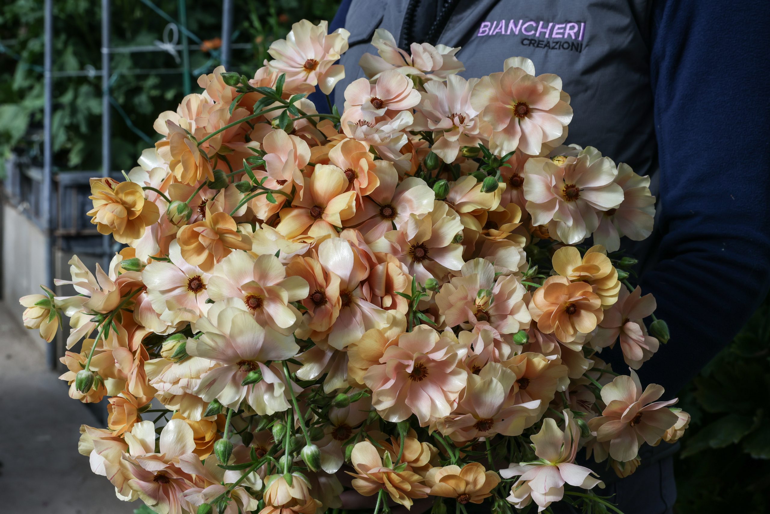 Odmiana Arena olśniewa niezwykle miękką, morelowo-kremową paletą z subtelnymi różowymi refleksami, które w świetle wyglądają jak muśnięcie satyny. Jej kwiaty są pełne, lekkie i delikatnie falowane, co nadaje im wyjątkowo naturalny charakter. Każdy pęd obficie obsypany jest kwiatami o jedwabistych płatkach, które pięknie układają się w dużych, przestrzennych kompozycjach. Dzięki mocnym łodygom i znakomitej trwałości po ścięciu, Arena jest idealną odmianą do bukietów ślubnych, dekoracji premium oraz wiosennych aranżacji ogrodowych. To jaskier, który zachwyca subtelnością, lekkością i elegancją — prawdziwa perła w kolekcji Natura Moderna.Dlaczego warto wybrać jaskry ‘Natura Moderna’: