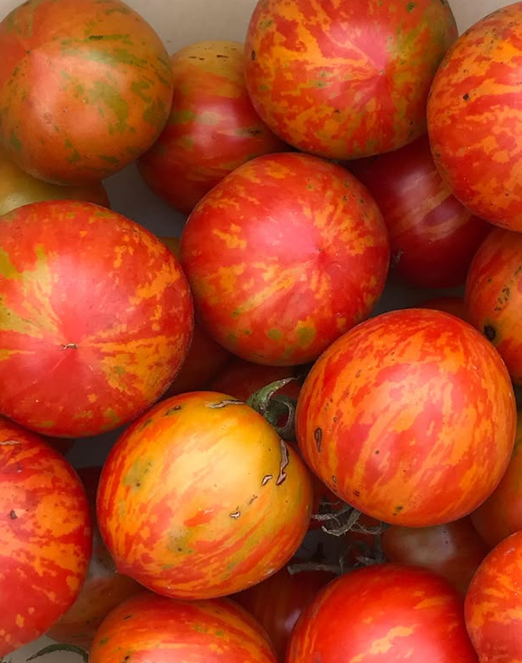 - Efektowne owoce – czerwone pomidory z charakterystycznymi złotymi paskami.