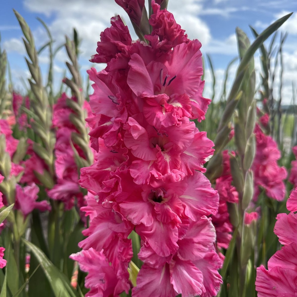 Mieczyki ‘Kingston Ruffle’ z energetycznej linii Flamenco to odmiana, która przyciąga uwagę intensywnym kolorem i dynamicznym charakterem. Klasyczne różowe kwiaty z delikatnie pofalowanymi płatkami tworzą efekt pełen życia i ekspresji – idealny do ogrodów, które mają zachwycać. To nowość, która świetnie sprawdzi się zarówno jako mocny akcent na rabacie, jak i w efektownych bukietach. Wysokie, smukłe pędy i wyrazista barwa sprawiają, że ‘Kingston Ruffle’ doskonale komponuje się z innymi roślinami lub gra główną rolę w kompozycji. Mieczyki doskonale prezentują się w grupach lub wplecione w rabaty, gdzie ich imponująca gama kolorów sprawia, że łatwo je łączyć z innymi roślinami wieloletnimi, takimi jak lilie, szałwie, róże czy dalie. Są również doskonałe do ogrodu kwiatów ciętych.