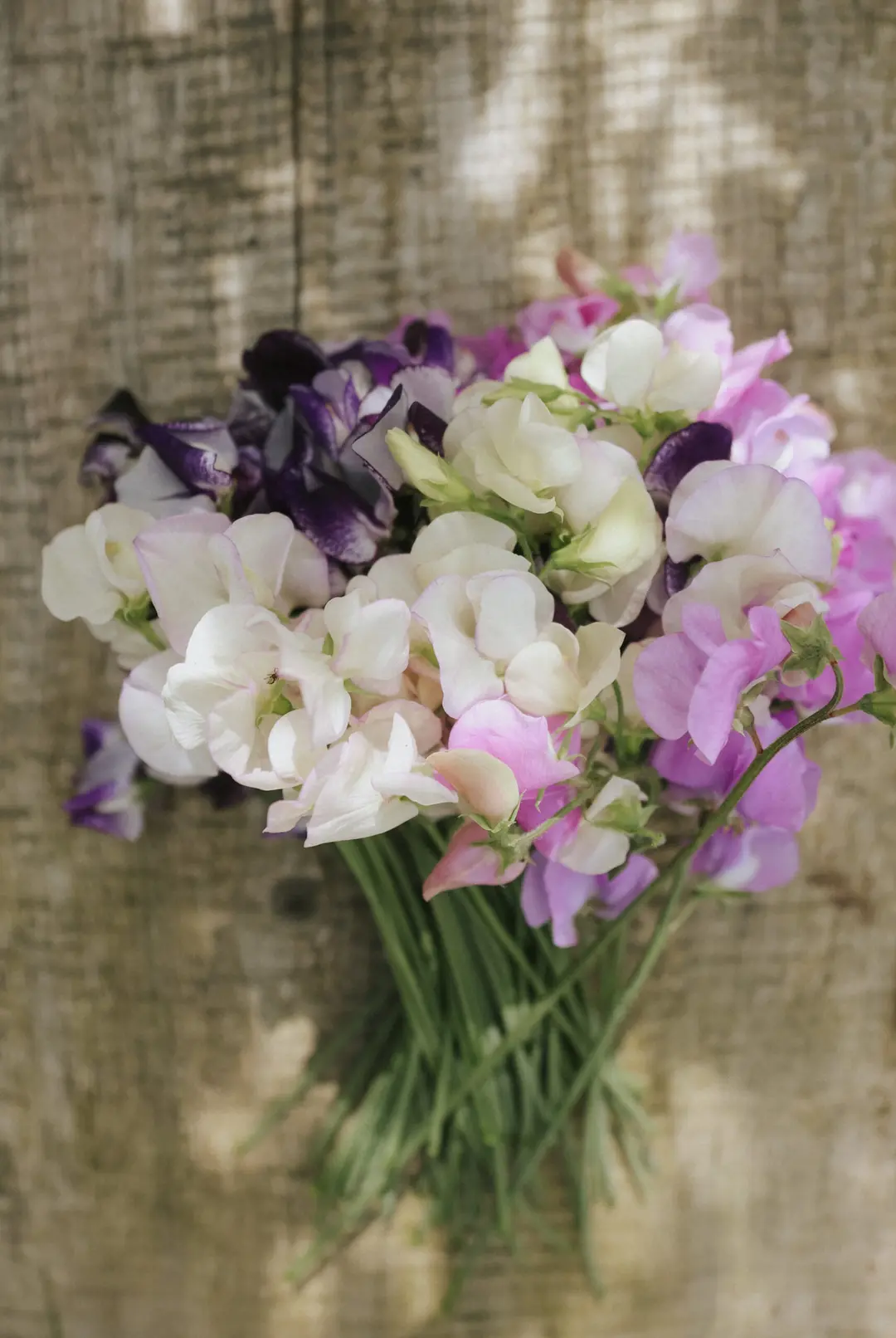 Miks groszków pachnących Sicilian Sunset to zachwycające połączenie delikatnych i głębszych odcieni fioletu z bielą, tworzące widowiskową, pełną uroku kompozycję.